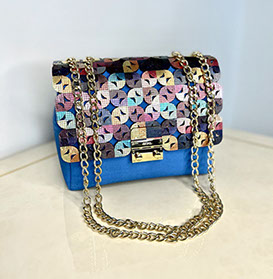 Borsetta azzurra con cover luminosa colorata, due tasche interne, una con zip,
