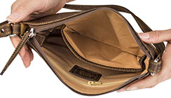Tracolla Uomo, tracolla regolabile, tasca davanti, 1 tasca dietro con zip, tasca interna con zip, colore marrone