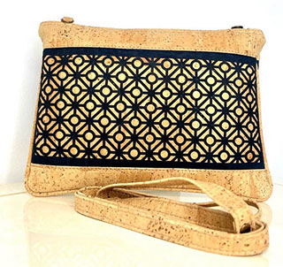 Struttura morbida, chiusura con zip, tasca con zip dietro, all’interno 1 tasca con zip, colore naturale/blu