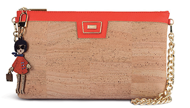 Pochette beige e bordo in pelle arancione, tracolla dorata